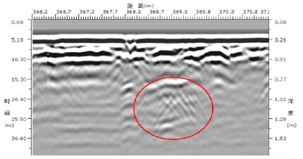 鋼筋混凝土板下方兩個砌筑管溝的雷達圖像