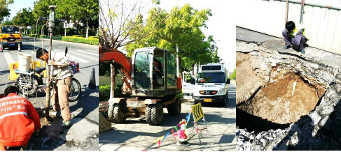 經VGPR-20普查探測發現的空洞災害點現場鉆孔和開挖處治。